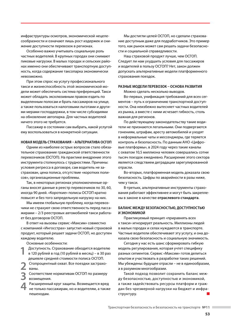 В сентябрьском выпуске журнала Общественного совета при Минтрансе России «Транспортная безопасность и безопасность на транспорте» вышла статья Максима Шушарина, директора управляющей организации сервиса «Максим»: